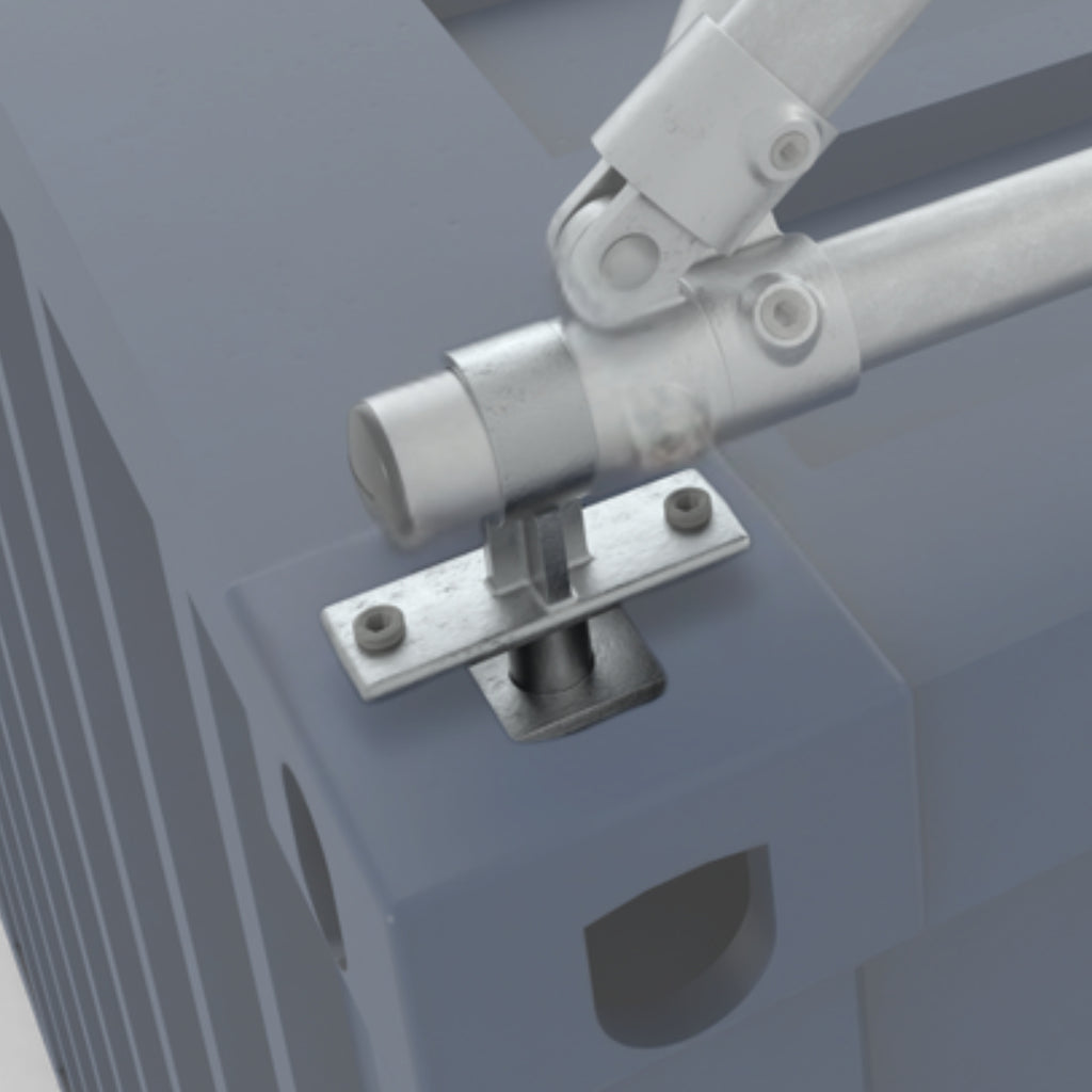 Met behulp van 2 stelschroeven en een 8 mm inbussleutel wordt de klem stevig vastgezet. Je hoeft niet te boren, waardoor de container onbeschadigd blijft. Combineer deze containerkoppeling met buiskoppelingen uit ons 48,3 mm assortiment om een complete constructie te bouwen.