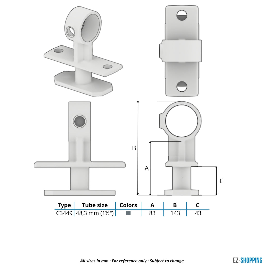 De C3449 containerklem is speciaal ontworpen voor montage op de bovenzijde van een zeecontainer, waarbij je een buis verbindt van de ene lange zijde naar de andere. Hiermee creëer je een stabiele bovenverbinding die gebruikt wordt als bovenligger bij een containerframe of als basis voor een overkapping of spandoekconstructie bovenop de container (bekijk ook onze containerframes voor spandoeken).