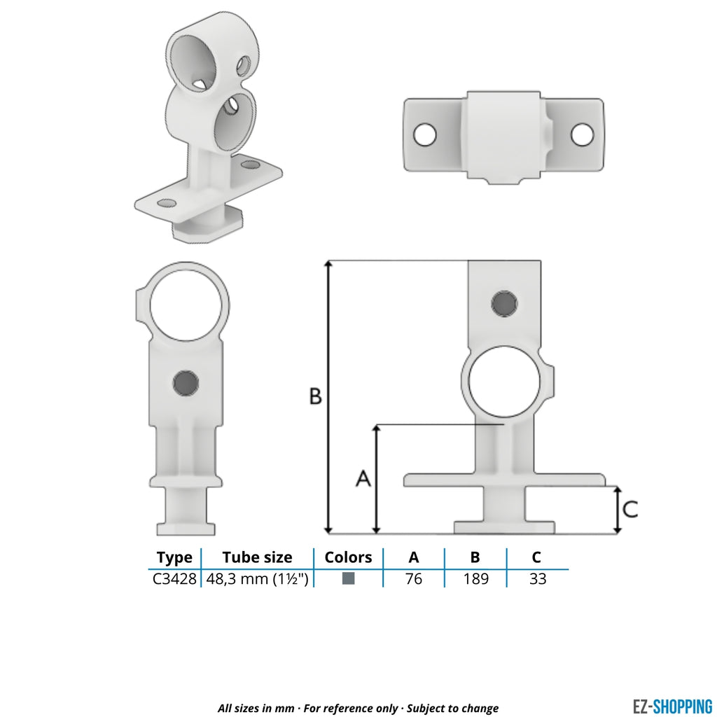 - Geschikt voor buisdiameter: 48,3 mm (horizontaal en verticaal)