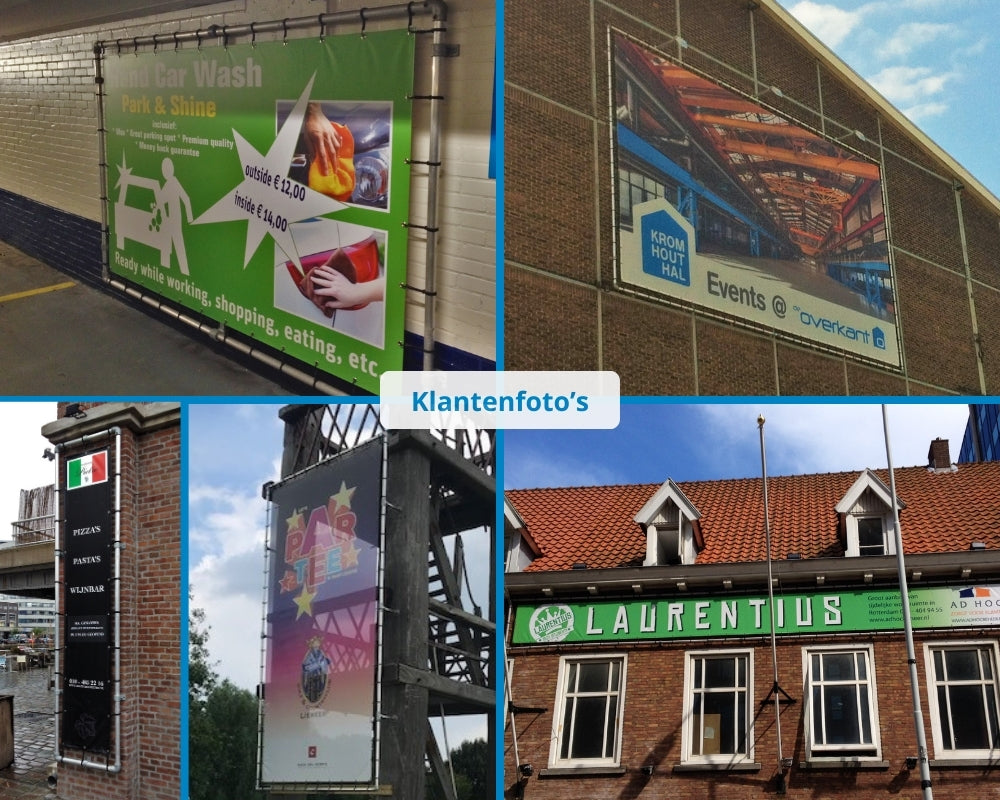Spandoek: Bij het frame zit geen spandoek inbegrepen, maar wij bieden wel voordelig spandoeken aan in onze shop. Bekijk de spandoeken hier.