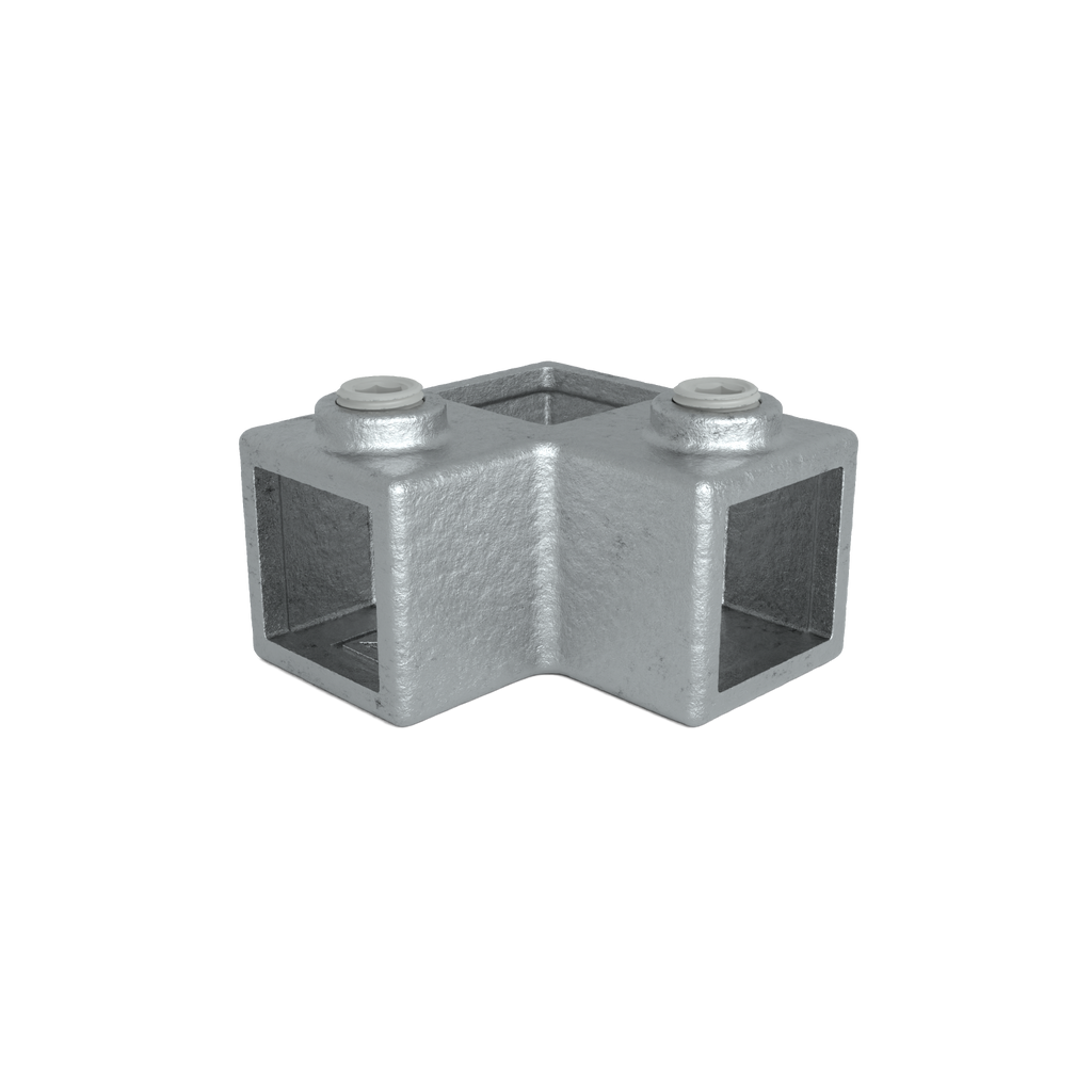 De buiskoppeling Hoekstuk 90° wordt gebruikt voor hoekverbindingen van 90 graden met drie steigerbuizen. In tegenstelling tot het Kniestuk 3-weg is het bij deze koppeling mogelijk om één buis doorlopend door de fitting te laten lopen.