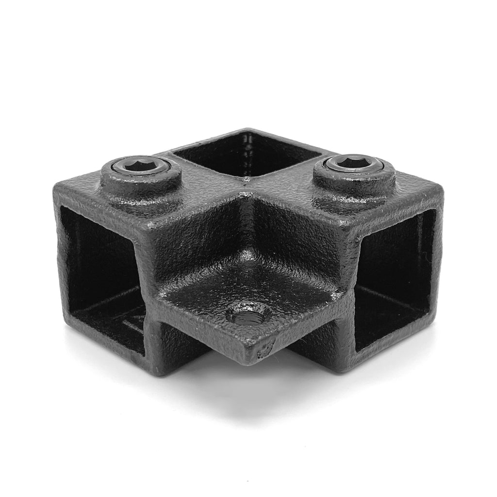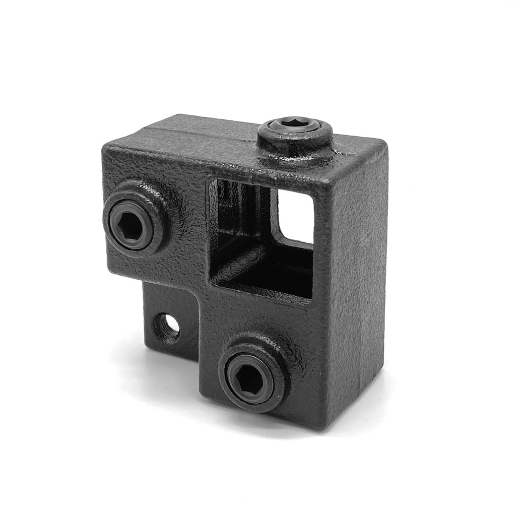 Hoekstuk 90º met bevestigingplaat zwart 25 mm vierkant