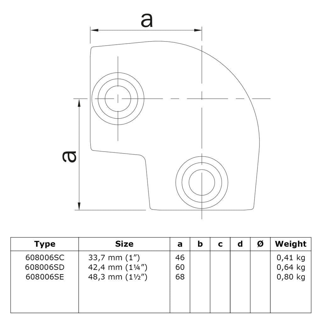 Kniestuk 2-weg 90º ±11º 48,3 mm