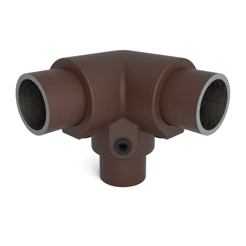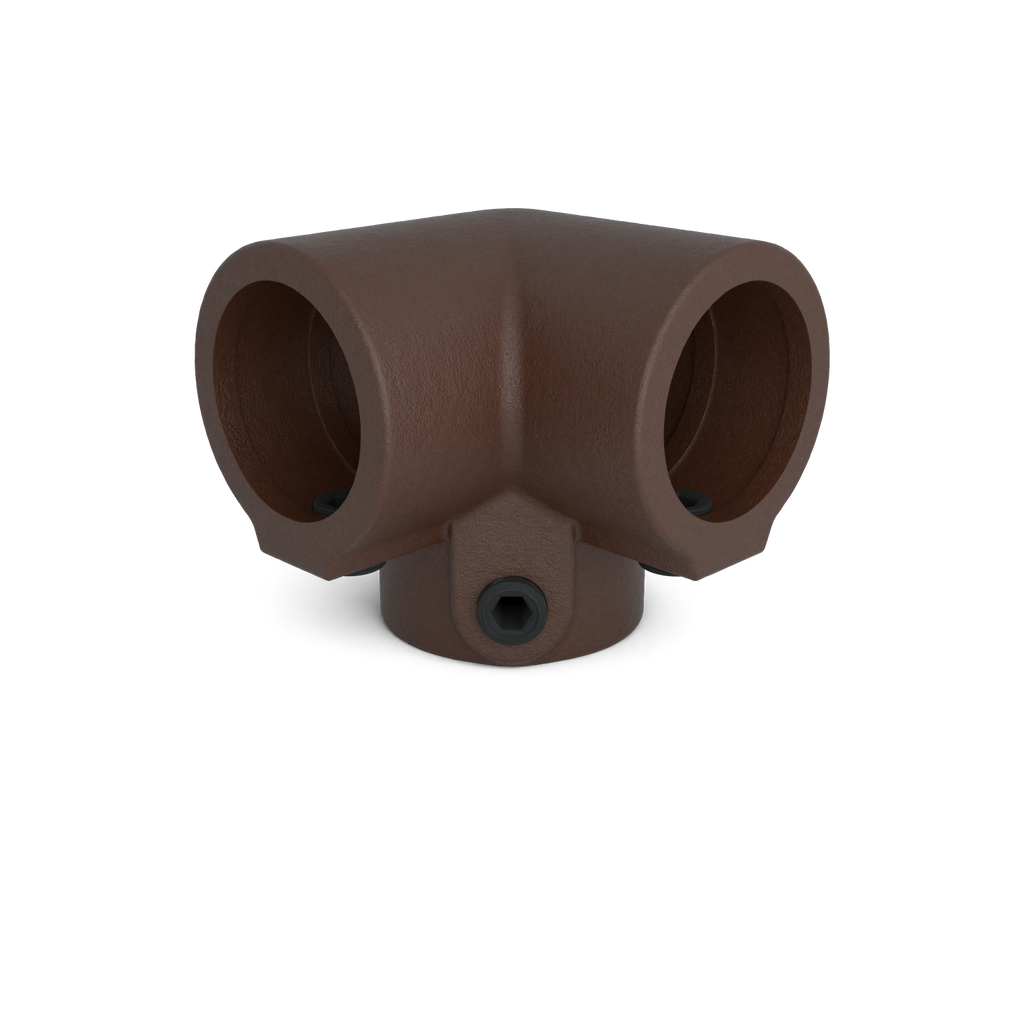 De buiskoppeling Kniestuk 3-weg is een hoekverbinding van 90 graden voor het samenbrengen van drie steigerbuizen in één punt. Deze koppeling wordt toegepast op een buitenhoek waar twee buizen haaks op elkaar staan en een derde buis verticaal of horizontaal wordt aangesloten.