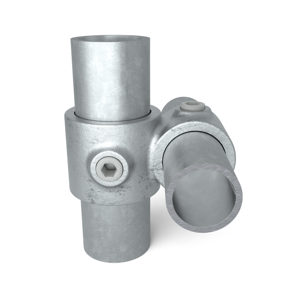 Bij deze uitvoering wordt een haakse verbinding gemaakt tussen een buis van 26,9 mm en een buis van 33,7 mm.