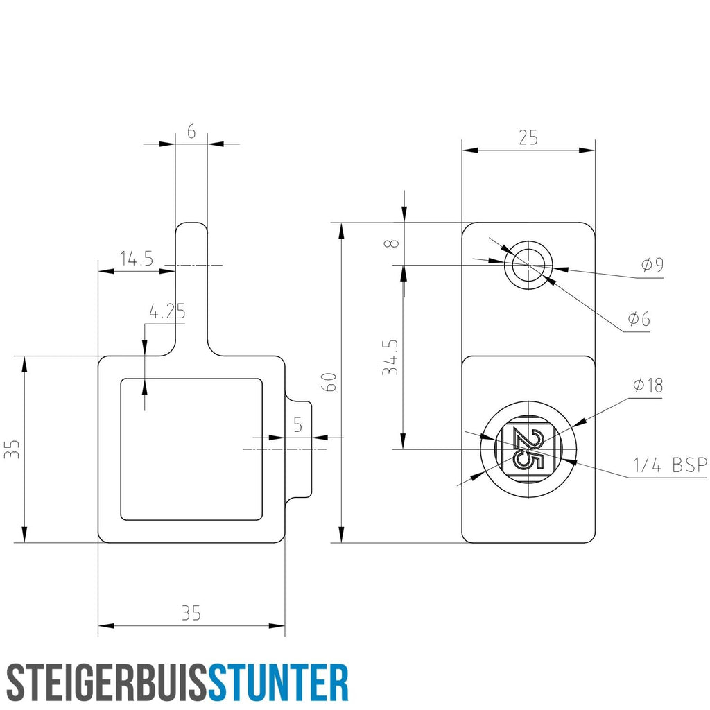 Oogdeel scharnierstuk zwart 25 mm vierkant