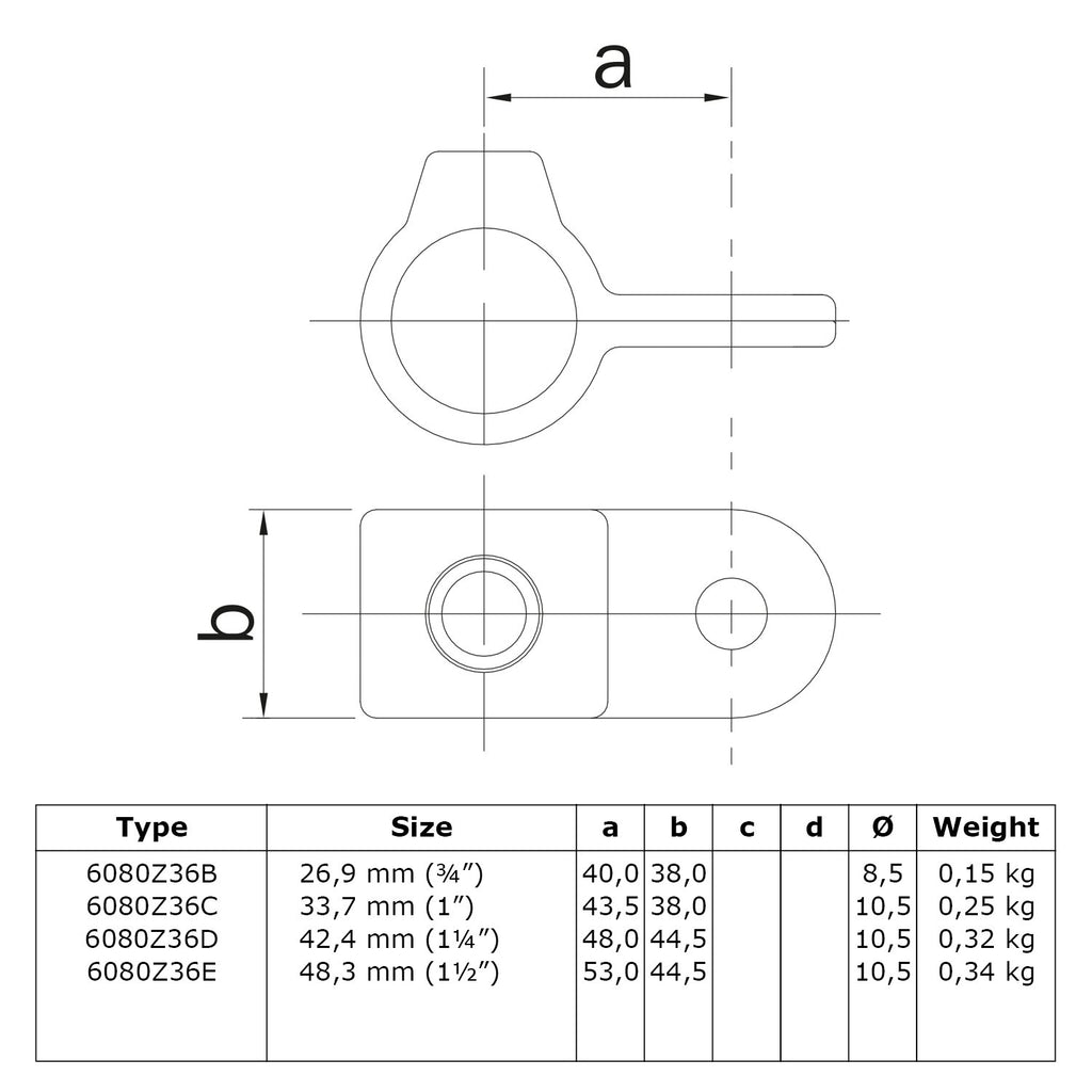 Oogdeel Scharnierstuk zwart 42,4 mm