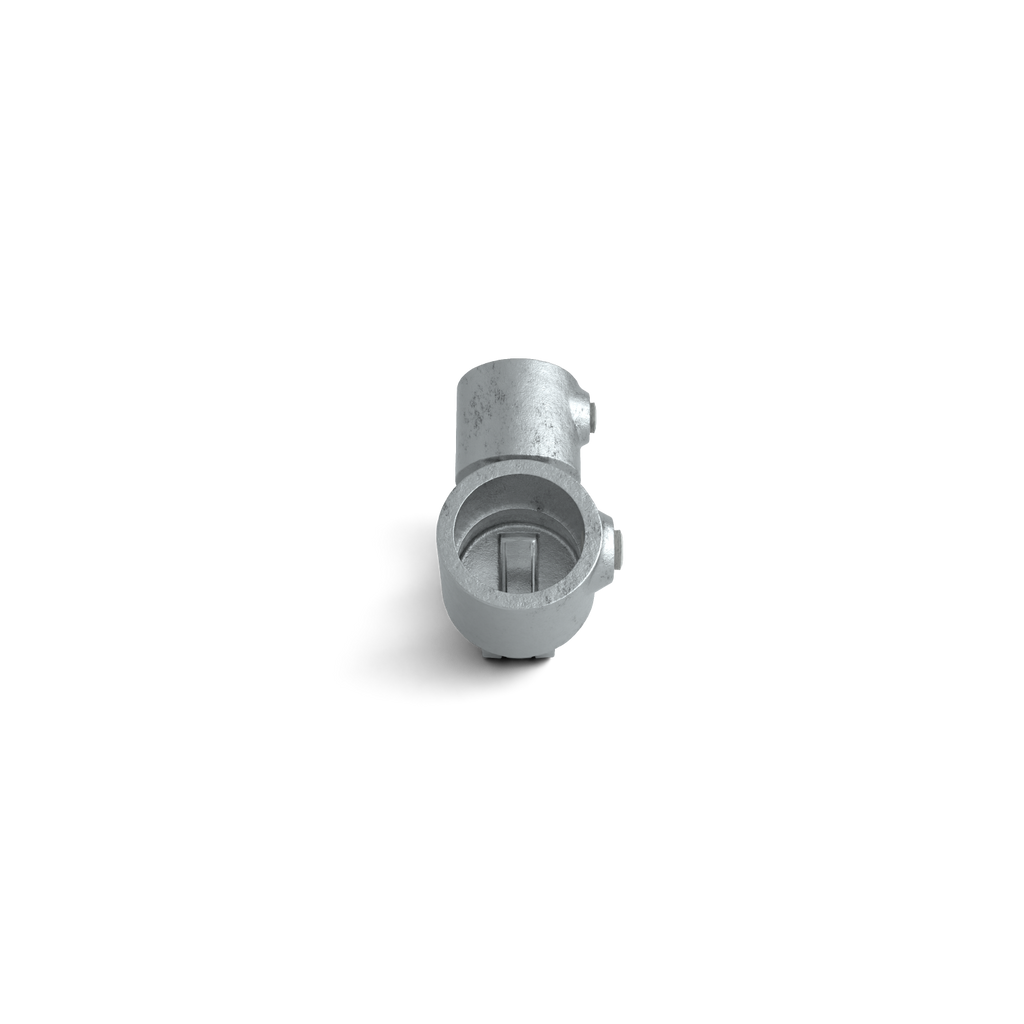 De geïntegreerde scharnierpennen zijn niet demontabel en kunnen niet in een vaste hoek worden geborgd. De verbinding blijft daardoor continu scharnierend, wat deze uitvoering geschikt maakt voor dubbele draaipunten binnen één constructie voor bijvoorbeeld schoren.