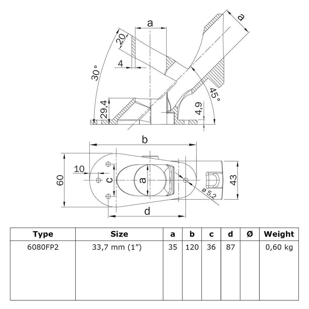 Vlaggenstokhouder 45º-90º 33,7 mm